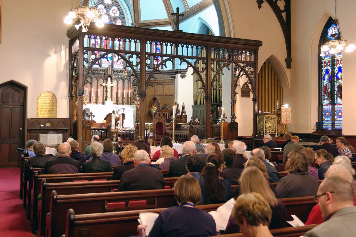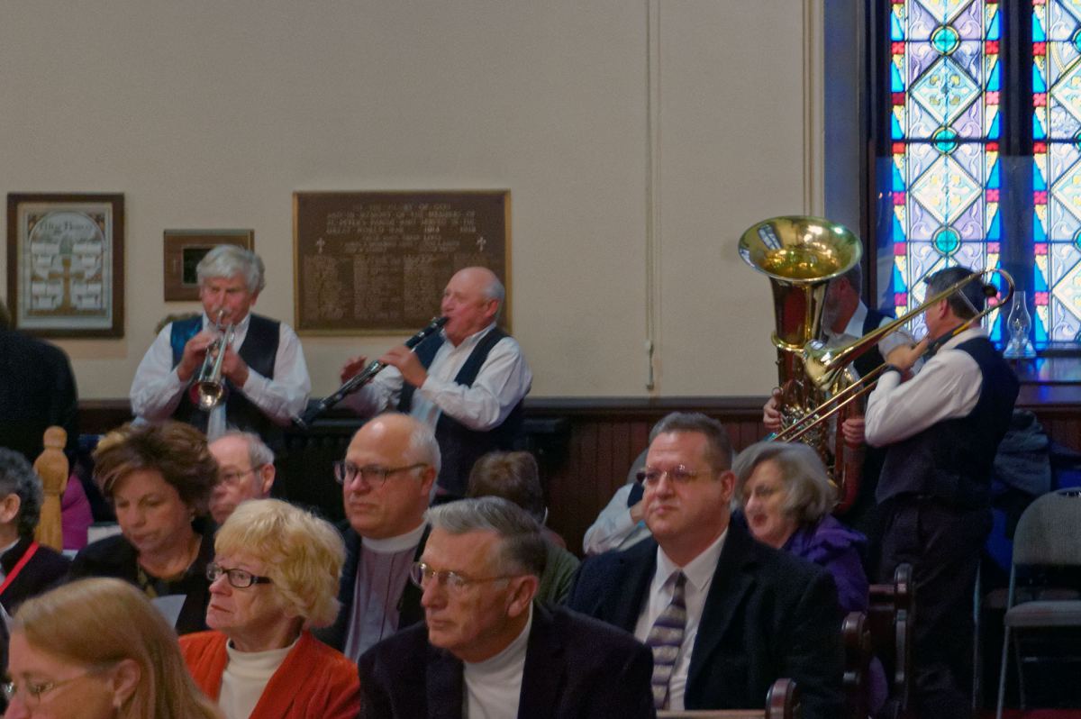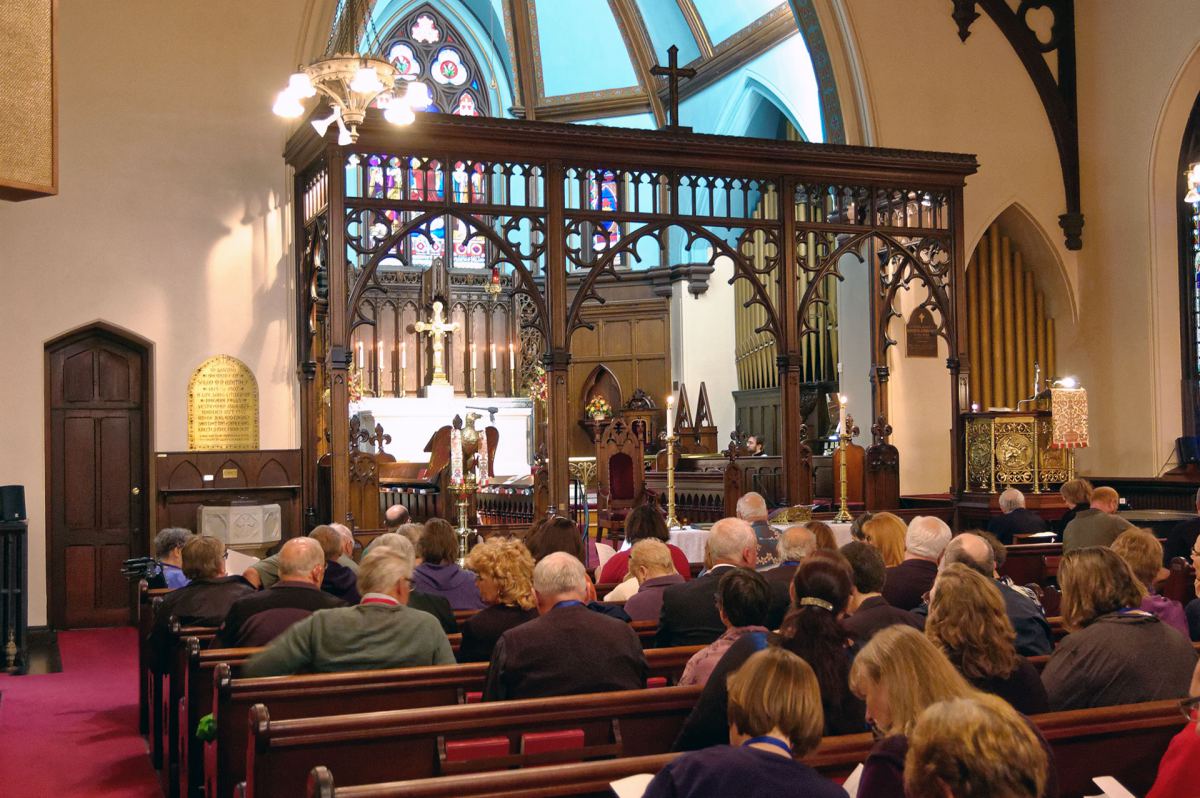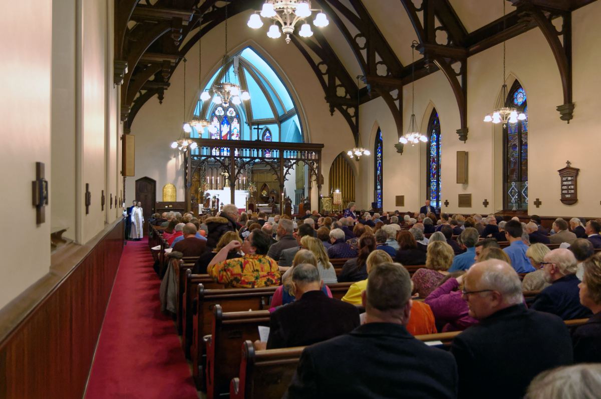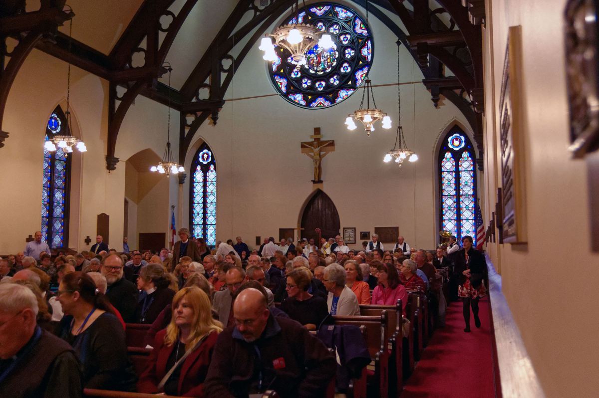 Last year the Diocesan Convention Eucharist was held at St. Peter’s Church on October 26th at 6 pm. Attendance was overwhelming with over 300 people in the nave, and many others in an overflow area. A Dixie land band played upbeat music before the Service. The band continued to play “When the Saints go marching in” as Bishop Franklin and clergy processed up the center aisle into the chancel. The 2018 Diocesan Convention was significant in that it was Bishop Franklin’s last Convention. Franklin will be retiring as Bishop of the Diocese of Western New York, in April 2019, when he will “Pass the Crozier” to Bishop Sean Rowe, who heads the Episcopal Diocese of Erie, and was elected Provisional Bishop for the Diocese of Western New York at this Convention.