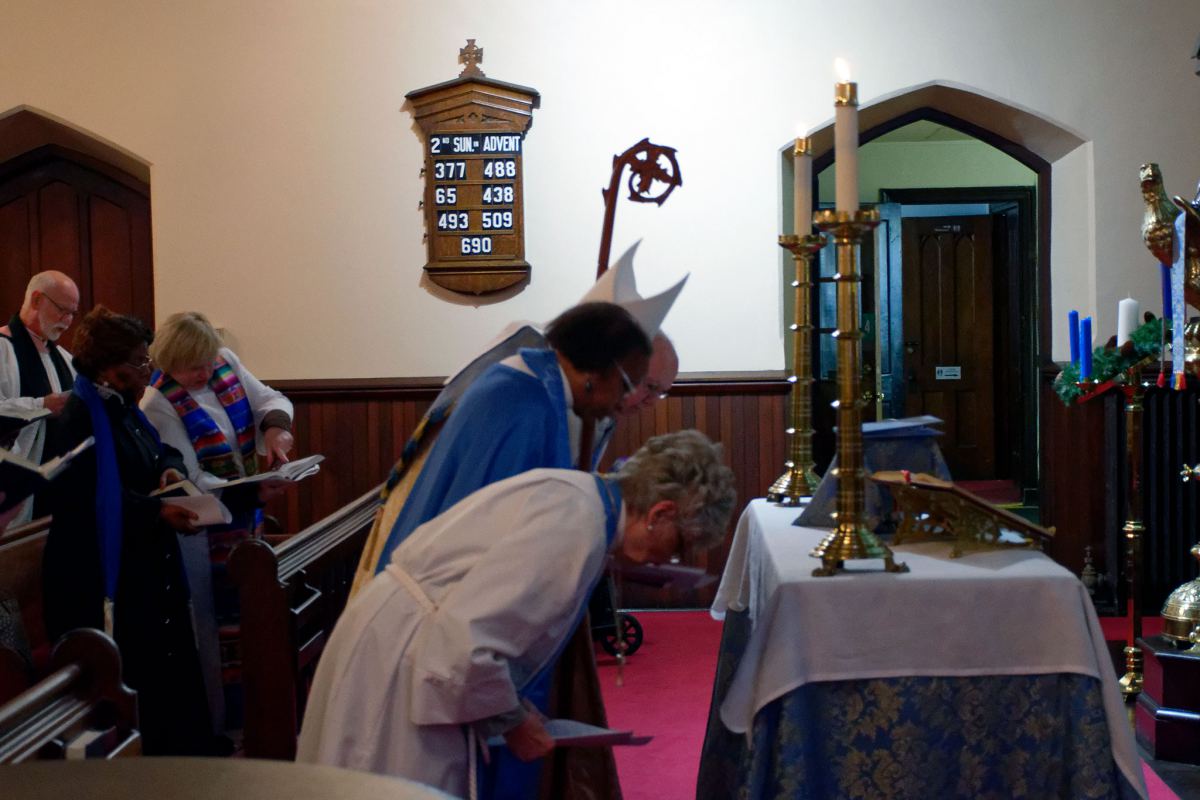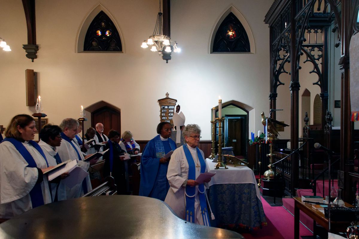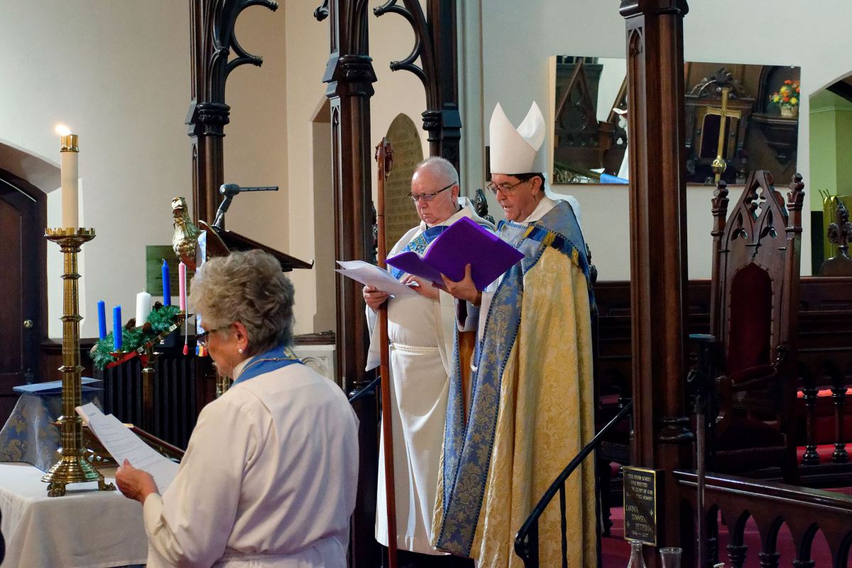 On December 9, 2018, The Second Sunday in Advent, Bishop Franklin Installed the Rev. Helen Harper as the Priest-in-Charge of St. Peter’s Church. The Wardens, and Vestry members were present, as well as Deanery Reps, clergy of the Diocese, family and friends. The night was cold but inside there was warm from the glow of candlelight in the nave. Following the Service was a reception provided by Caroline’s Kitchen, a culinary program of the YWCA of the Niagara Frontier.